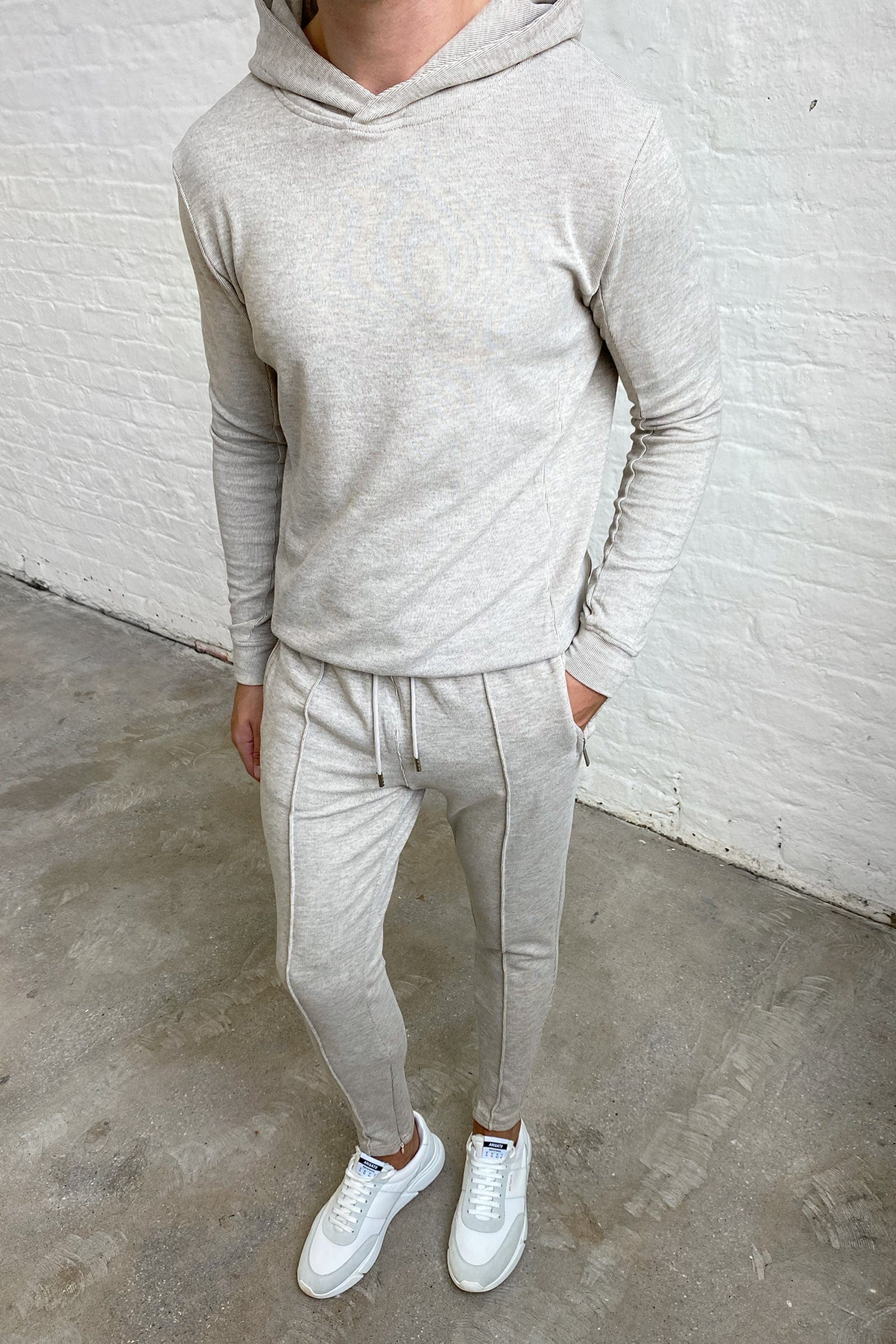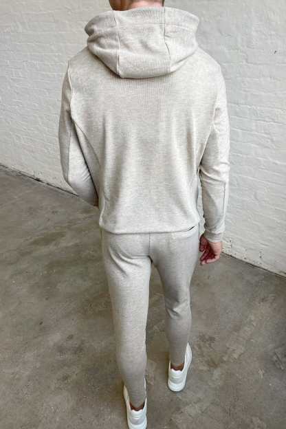 The Knitted Hoodie embodies meticulous craftsmanship, boasting a gentle knit outer layer paired with a luxuriously soft brushed fleece interior. Its panelled design imparts a sense of structural refinement to its overall aesthetic. For a sophisticated winter ensemble, pair with the matching Knit Pant.