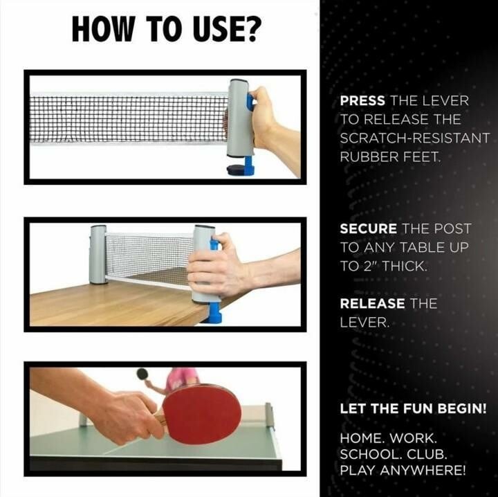 Play Table Tennis AnyTable!On Almost Any Table Anytime with this Retractable Table Tennis Net.